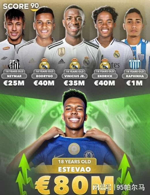 当然,现阶段的埃斯特旺是人人皆知的掌中宝,或者说2007年出生的他,身上的神童标签还没有过时。他在10岁时就成为与耐克签约的最年轻的巴西球员,在离开巴西之前,已经是欧洲足坛之外身价最高的球员(5000万欧元)。